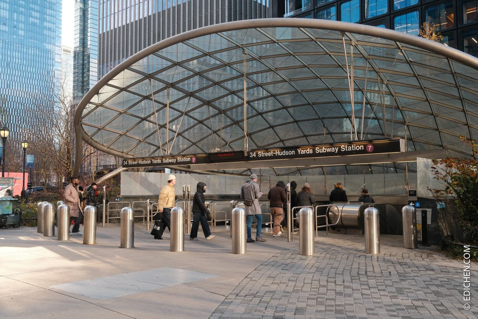 距离最近并且是唯一最近的选择是,地铁7号线的终点站 34 Street-Hudson Yards,可从42街时代广场乘坐,或搭乘任何线路到时代广场换乘。其他地铁线路也可以到达附近,但行走距离还是比较远的,如果不是刚好在周围游玩,还是推荐坐7号线直达。