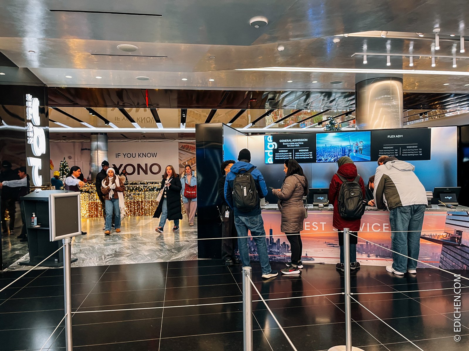Edge观景台位于商场四层,有明显标识,很容易找到,在入口处也有售票处,可以随时购买。